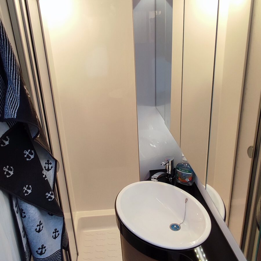 Er ist der „große“ Weiße, der mehr Raum und Komfort bietet, dadurch, dass er ein schmaler Teilintegrierter ist.